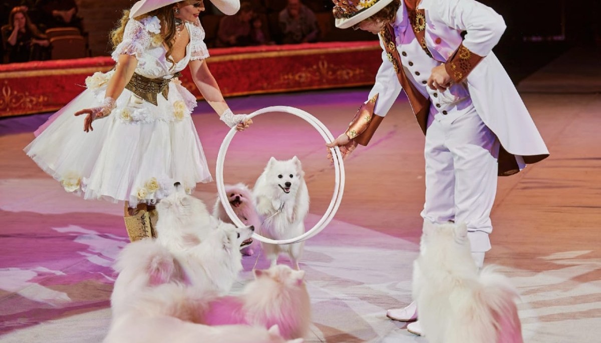 Искреннюю «Улыбку» вам подарят белоснежные собачки – Анастасии Новичковой, обладательницы Короны «Принцессы Российского Цирка», а также призового места на пьедестале в г. Джухай (Китай) и Почетной Премии международной наградной палаты «Нефертити»;